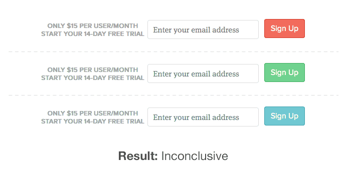There’s a lot of psychology research that points to the impact various colors make on our behavior, and a lot of companies have gotten results from testing button color changes. We didn’t get the same result.