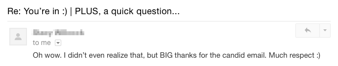Every new customer at Groove gets an email from Alex asking them why they signed up: