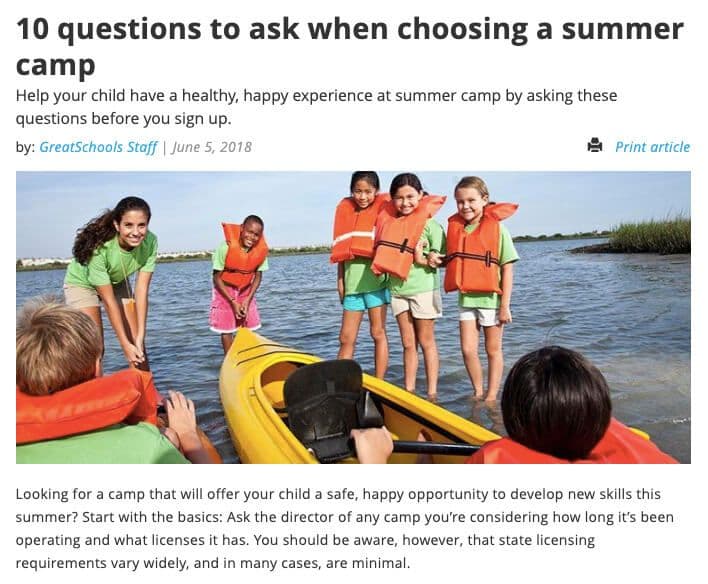 “You can tell when people have a list from a blog or something,” McCarthy told us. “They’ll be going down a ‘15 essential questions to ask your summer camp’ list, and you can just feel the anxiety they have about sending their child to camp with us.”