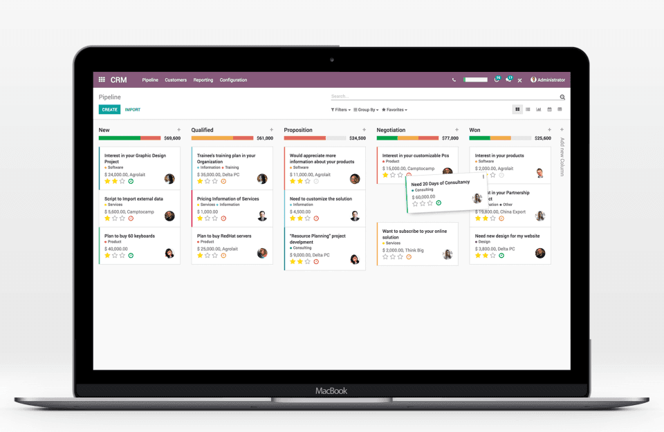 Odoo is a fully-integrated, customizable, and open-source suite of business applications. A majority of the business needs such as CRM, sales, project, manufacturing, inventory, and accounting are met through this all-in-one software solution. Odoo is designed to meet the needs of companies regardless of size and budget.