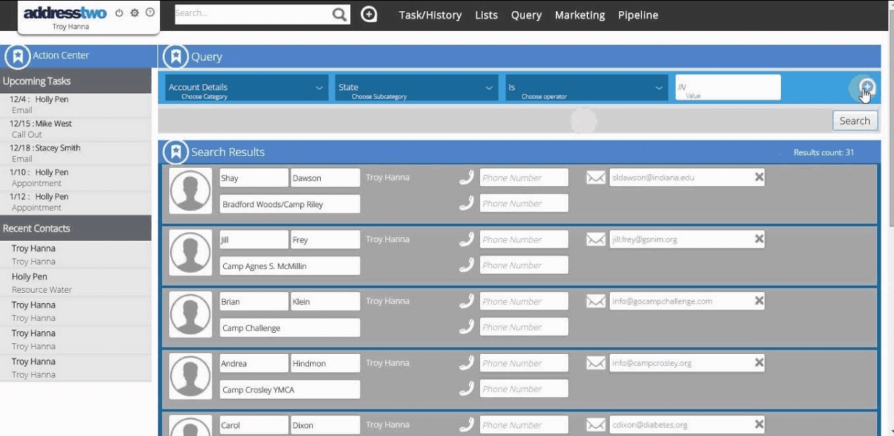 AddressTwo is a simple CRM system specially designed for the needs of small businesses. As an all-in-one solution, AddressTwo combines both the relational, outbound selling tools such as contact management, tasks, and follow-up tracking with the marketing tools such as email marketing, inbound capturing through webforms, and autoresponders. Use marketing analytics to see who your most engaged leads are at any time and then follow up.
