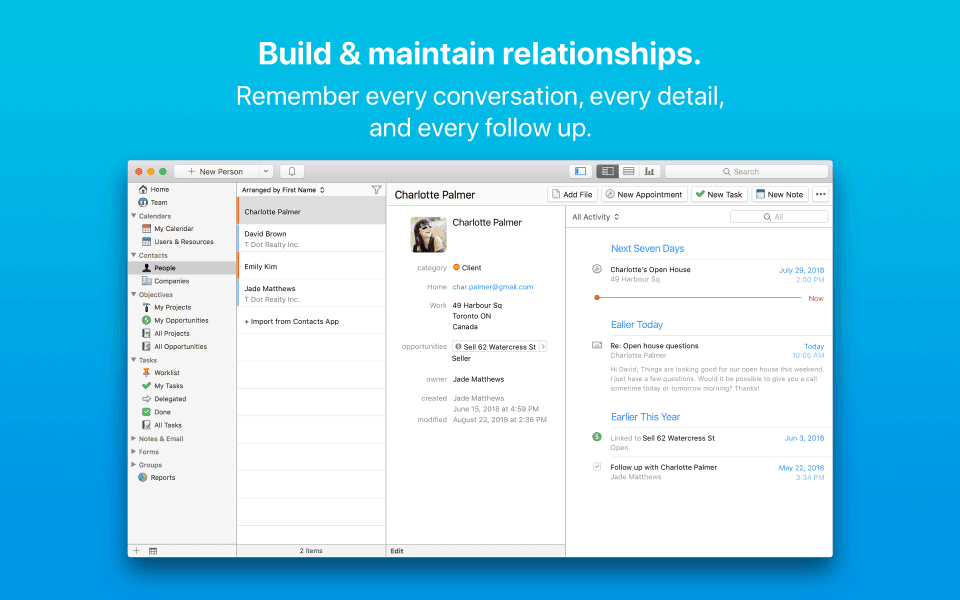Exclusively for Mac, iPhone, and iPad. Win more business and get more done with Daylite. Follow up when you say you will. Segment leads and customers into targeted lists. Organize all the moving pieces in projects and streamline processes so nothing ever slips through the cracks. Integrate with Apple Mail. Sync your Apple Contacts and Calendar. Work offline. Build customer relationships and execute on plans so you can scale your business. Your customers will think you’re superhuman, and you will be!