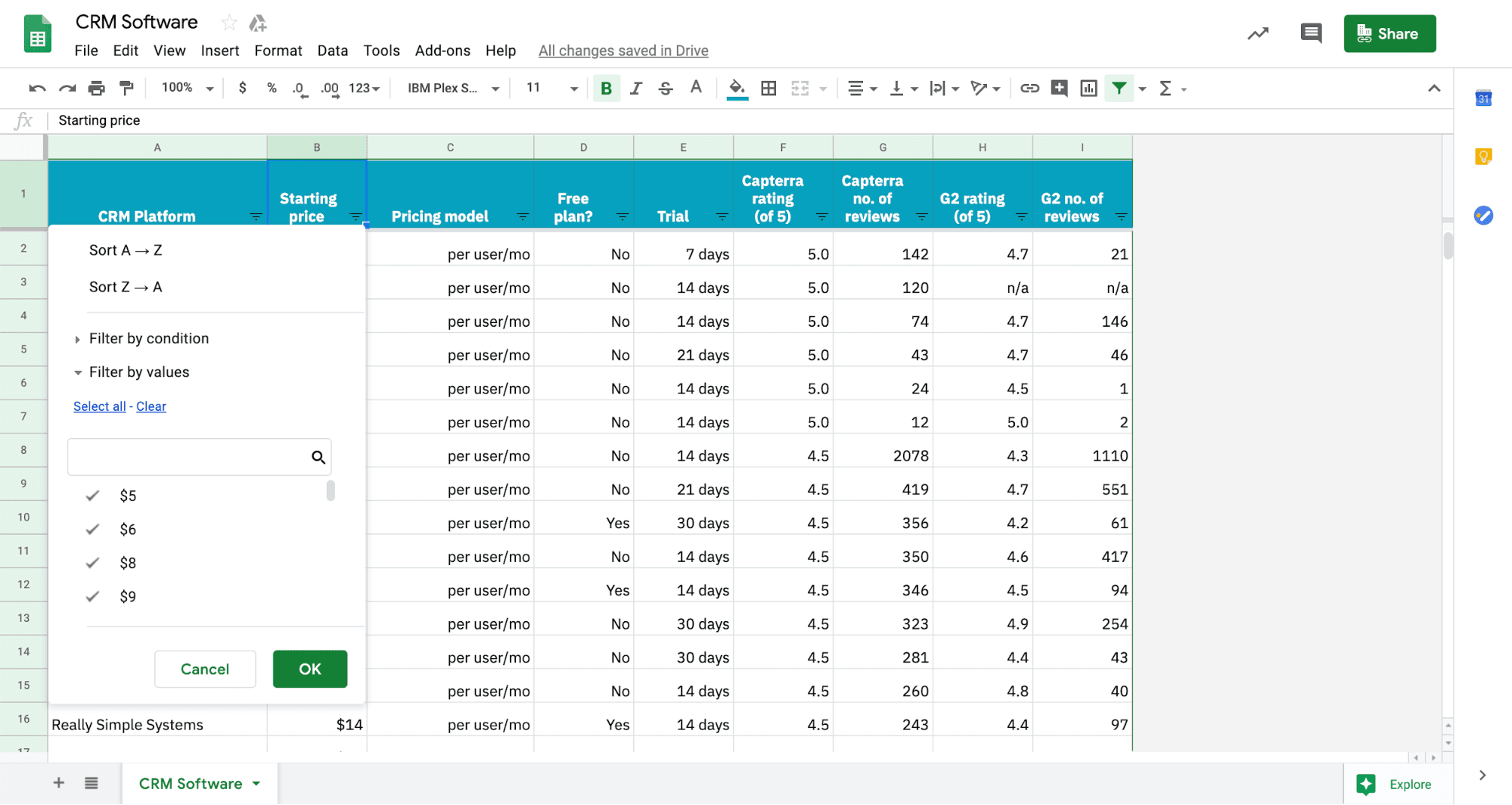 It has all the key elements for every CRM—including pricing, ratings, and built-in filters—right here.