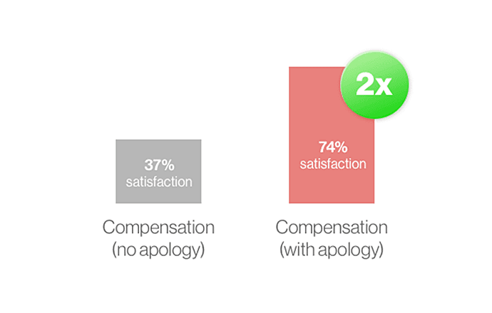 But, when the business added an apology on top of the compensation, satisfaction doubled to 74%.