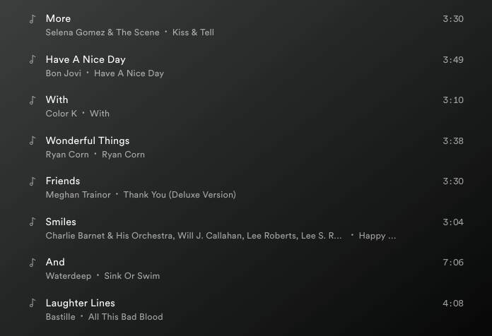 Which led to a custom playlist they’d created just for her. If you read the song titles in order, you get: