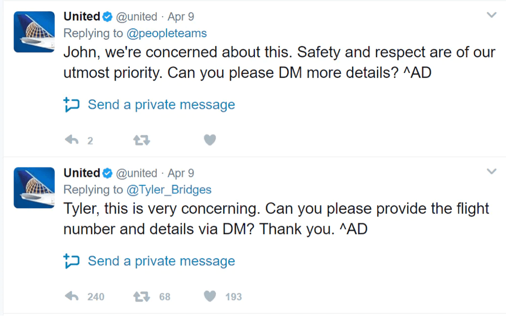 The airline’s customer service team did the right thing by responding and moving it to a private channel. But the damage is already done to their brand image. Anyone could publicly view all these complaints and make their own assumption about the quality of this airline.
