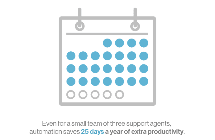 For a small team of three support agents, that’s more than 600 hours a year of extra productivity.