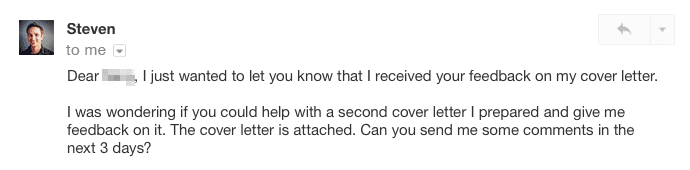 After the feedback was received, the participants got a reply asking for feedback on a second cover letter.