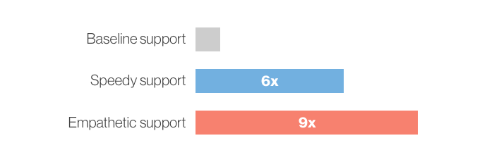 Excellent customer service has a multiplier effect on user acquisition: the same American Express survey that found that happy customers would be willing to spend more money *also *found that a happy customer, on average, tells nine people about their experience.