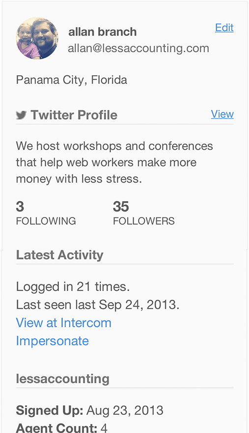 With our new Custom Profile app, you can easily access data from your internal sales app or 3rd party software, right from the ticket view window. To see it in action, check out how small business rock star Allan Branch of Less Accounting uses Custom Profiles: