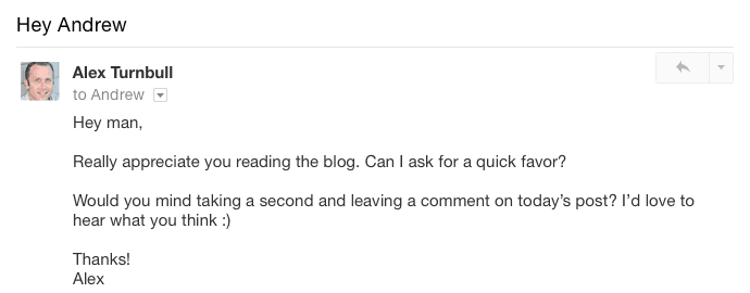 I mean personally reaching out to a reader, thanking them for reading, and asking them to leave a comment on your blog.