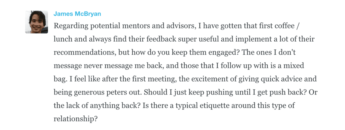 On a more general level, the “deliver value” part of connecting with mentors is not a one-time thing to get them in the door.