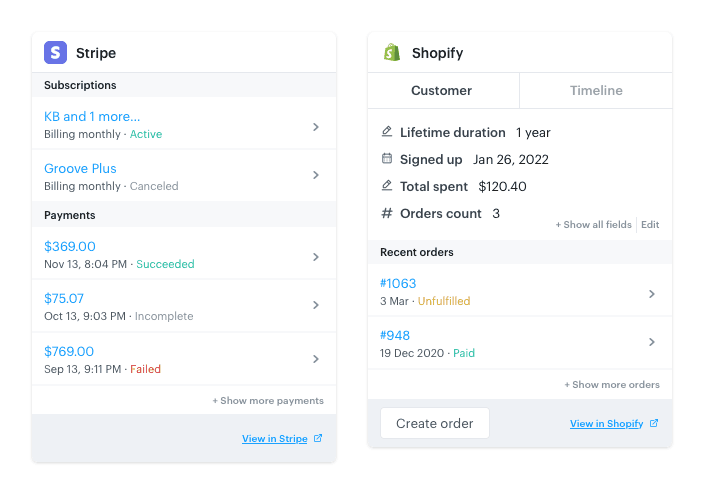 - Stripe: The updated Stripe integration provides a clearer view of key payment information alongside conversations, streamlining the payment process and improving customer support.