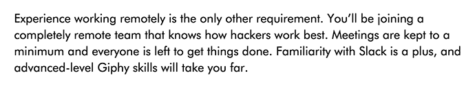 Doing this will (hopefully) immediately eliminate people who have no experience with remote work whatsoever and/or who think they wouldn’t be able to handle it.