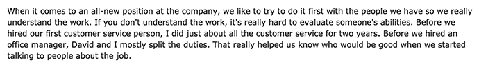 By doing the job you are hiring for, you’ll be able to write a way more accurate job description and be better able to define how the role relates to the company and its success.