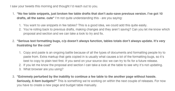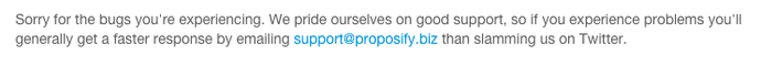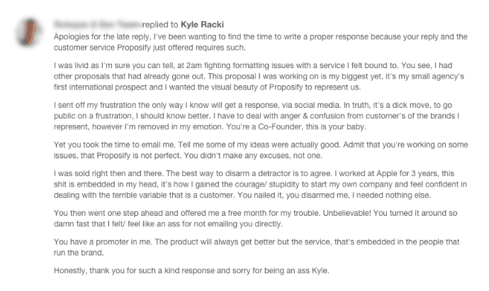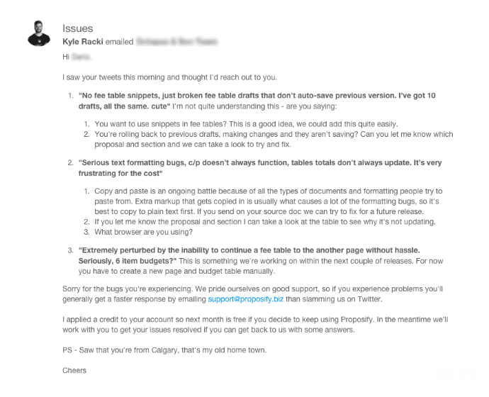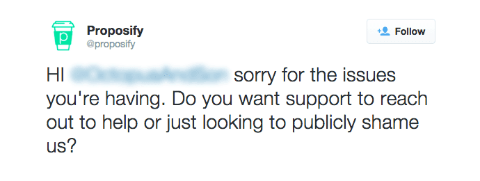Proposify, a SaaS company whose product helps people put together super-polished proposals, got a Tweet from a less-than-pleased customer.