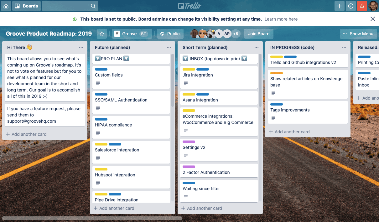 At Groove, we count requests in an internal Trello board. Each time we get the same request, a tracking card gets a “vote,” to help us see how popular the different requests are.