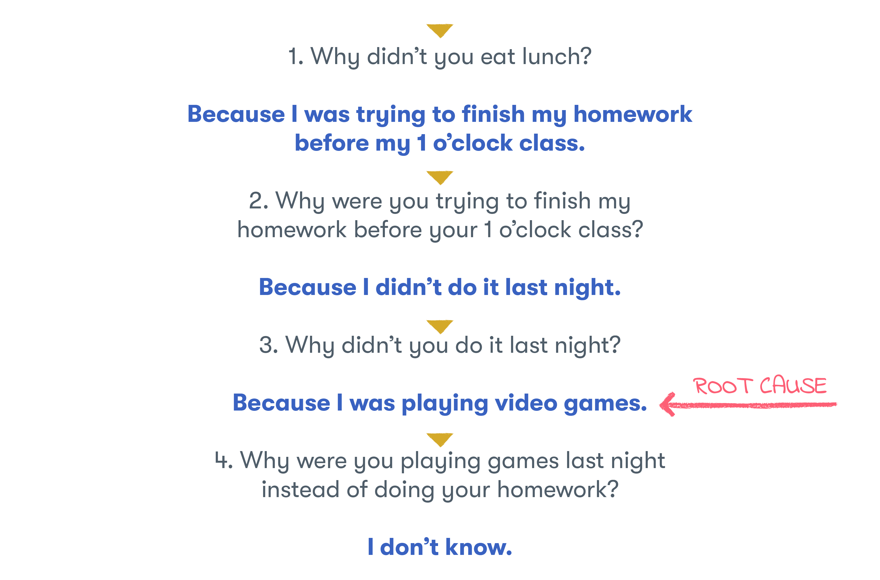 Just keep asking “why?” until you get to an answer that is clearly the “real” issue.