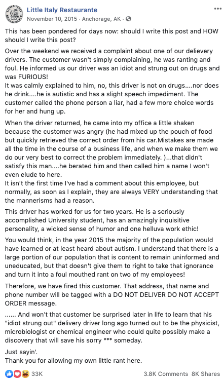 As our friend Jessica Malnik writes, “When the customer is upset, you have ‘one shot’ to publicly diffuse the situation and create a better experience for the customer.”