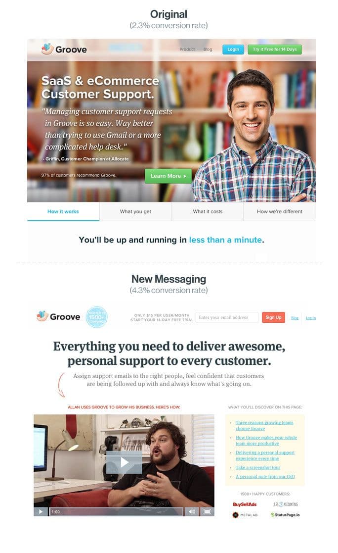 While we’ve redesigned our site a number of times, one thing that has remained constant in our growth has been the massive difference that testing messaging, positioning and copy makes.
