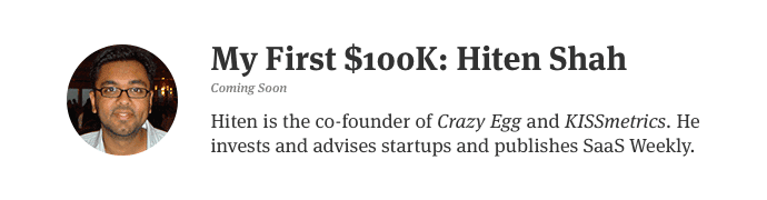 Additionally, an update I’m especially excited about: we’ll be interviewing other founders on lessons they’ve learned on their own journeys to their first $100,000 in monthly revenue, and featuring them here.