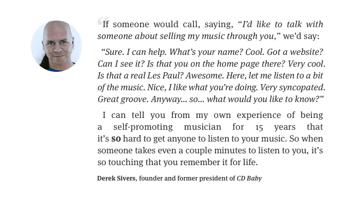 So when they called CD Baby about selling their music on the site, the CD Baby team would go out of their way to care: