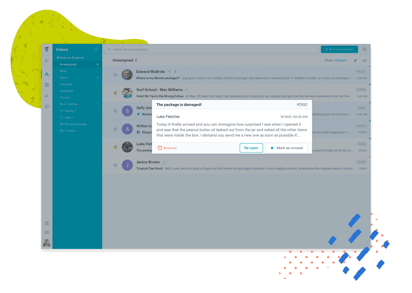 The hover to preview feature shows you the conversation messages and a few quick actions (such as the ability to “Close”, “Reopen” & “Mark as read”) when hovering over a conversation in the list view.
