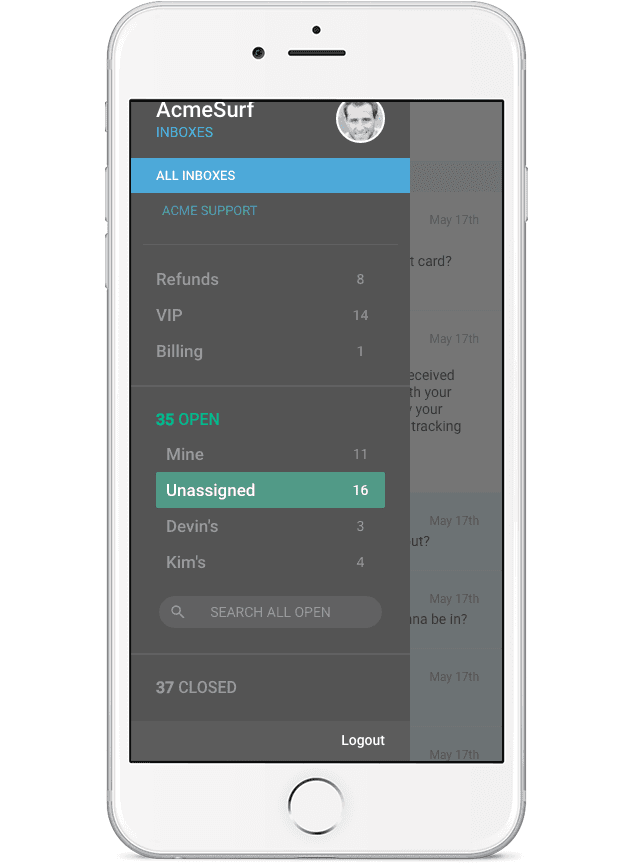 Did a customer contact sales instead of support? Not a problem! With a tap of the menu, you can move that ticket to the correct inbox without missing a beat.