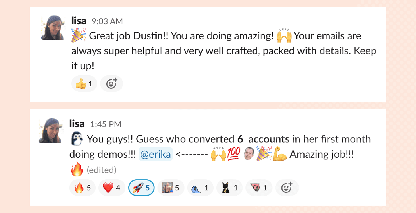 Our managers are quick to praise team members during onboarding. We’ve found the carrot always works better than the stick.