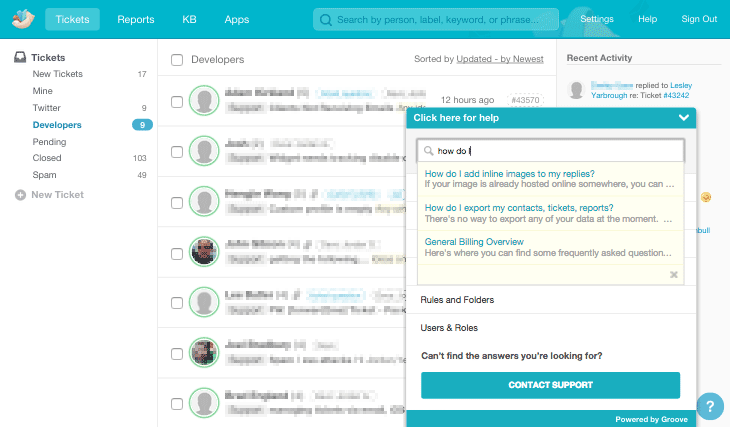 At Groove, we’ve found our own help widget to get far higher customer usage than the main knowledge base.