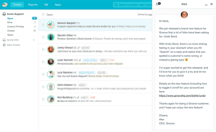 If you want to take things a step further, be transparent about updates even before you make them, so that your customers aren’t surprised when they arrive (don’t tell anyone, but we’re working hard on a public product roadmap for Groove that we’ll be releasing in the coming weeks).