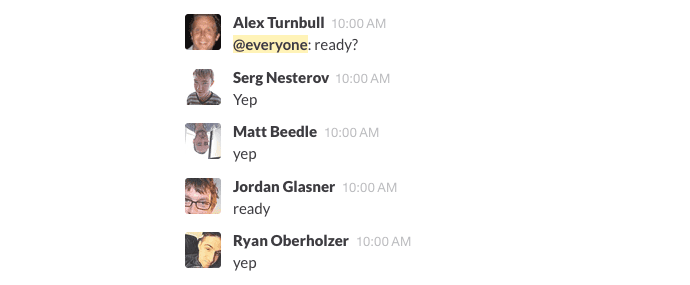Every morning (whenever an employee’s morning might be), each team member posts an update in Slack, sharing what they accomplished the day before, and what they’ll be working on that day.