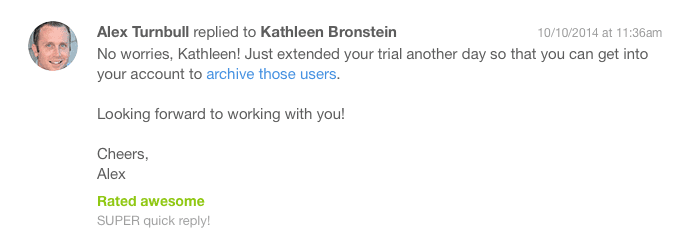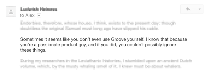 But I’ve had more than a few customers surprised to see my name in their inbox. One customer noted that she felt like getting an email from the CEO made her feel like Groove truly cared about our customers.