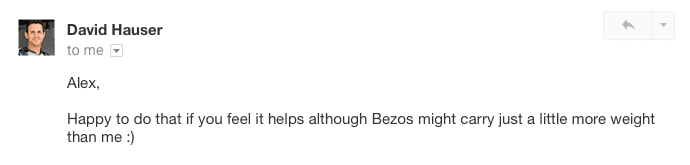 Ultimately, rather than an advisory role, I thought that the agreement could be made much more valuable by getting David as an investor.