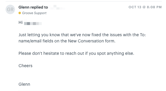 Here’s a simple example of an email we send a lot from Support here at Groove:
