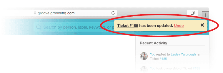 NOTE: If you’ve set your preferences to “take me back to all tickets” after you update a ticket, then your Undo send option will appear in the yellow notification at the top right of your screen.
