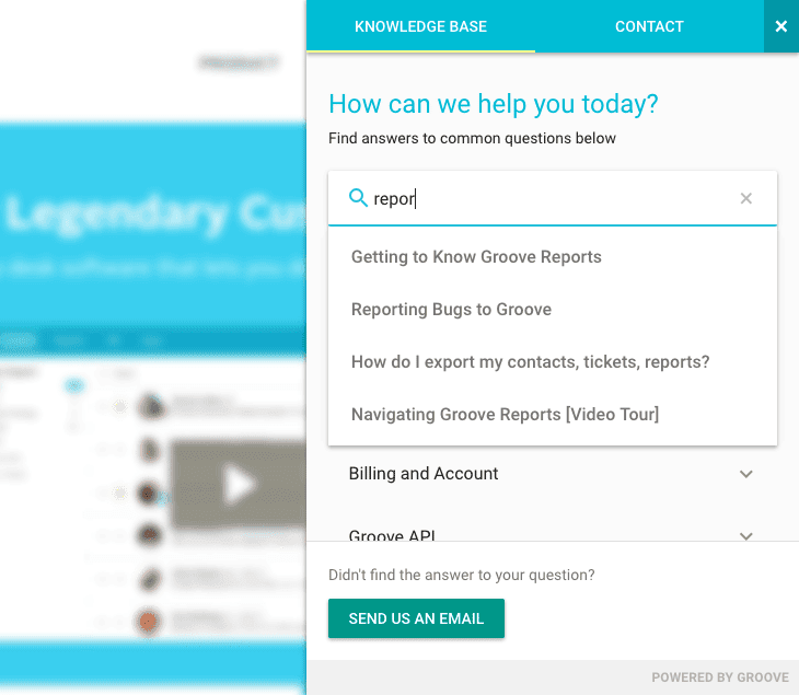 The new widget is bigger, faster, and easier for your customers to use. Now a big, pretty panel opens up on the side of your website and your customers can search your knowledge base with article suggestions shown as they’re typing. Search has been enhanced to include partial keyword matching so your customers can find exactly what they’re looking for.