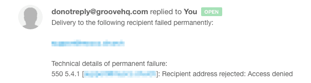 We have recently started slowly rolling out bounce support to all accounts. Now when you send an outgoing email from Groove and it bounces for whatever reason, these errors will show up as a reply on the ticket and re-open it so you are notified that it was not delivered.