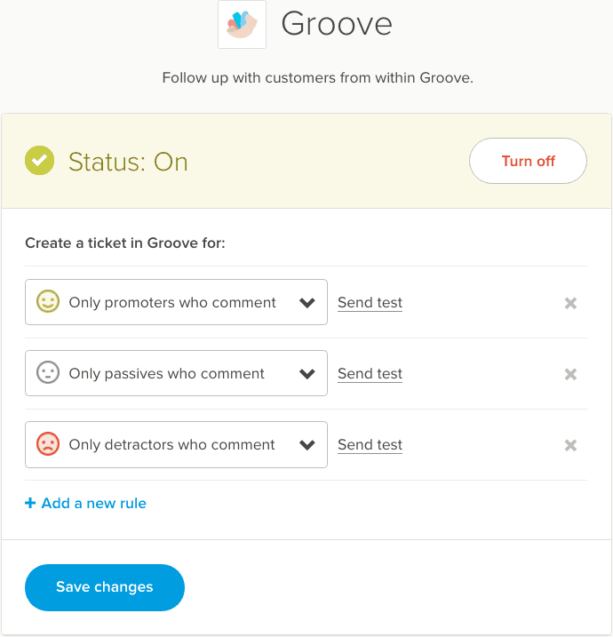 With Delighted you can easily send NPS surveys to your customers and get fast, actionable feedback for your business. When you connect Delighted and Groove you can create tickets from your survey responses to manage your customer conversations and feedback all in one place.